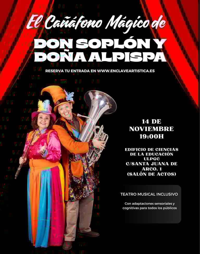 La Asociación Enclave Artística presentó la obra de teatro inclusiva “Mi Camino” en el Teatro Cruce de Culturas de Agüimes, dentro de la programación cultural del municipio. La obra, producida por la compañía Badabadum, ofreció una experiencia escénica adaptada a personas con discapacidad combinando música, narración y elementos visuales para garantizar la accesibilidad y participación de todos los asistentes. Este evento formó parte de las actividades organizadas por Enclave Artística para promover el ocio inclusivo y la participación cultural de personas con discapacidad. La representación de “Mi Camino” fue un paso más en el compromiso de Enclave Artística por crear espacios culturales accesibles y fomentar la inclusión a través del arte.